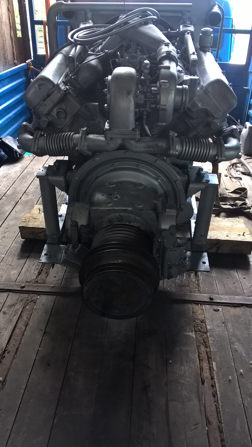 По-скольку в комбайне моторная установка стоит на подрамнике, заказчик выслал к нам на базу подрамник с блоком радиаторов и с механизмом отбора мощности комбайна, чтобы мы установили двигатель ЯМЗ с монтажным комплектом с точным соблюдением всех технических и технологических размеров, что в дальнейшем значительно облегчает установку двигателя с агрегатами в моторный отсек комбайна своими силами.