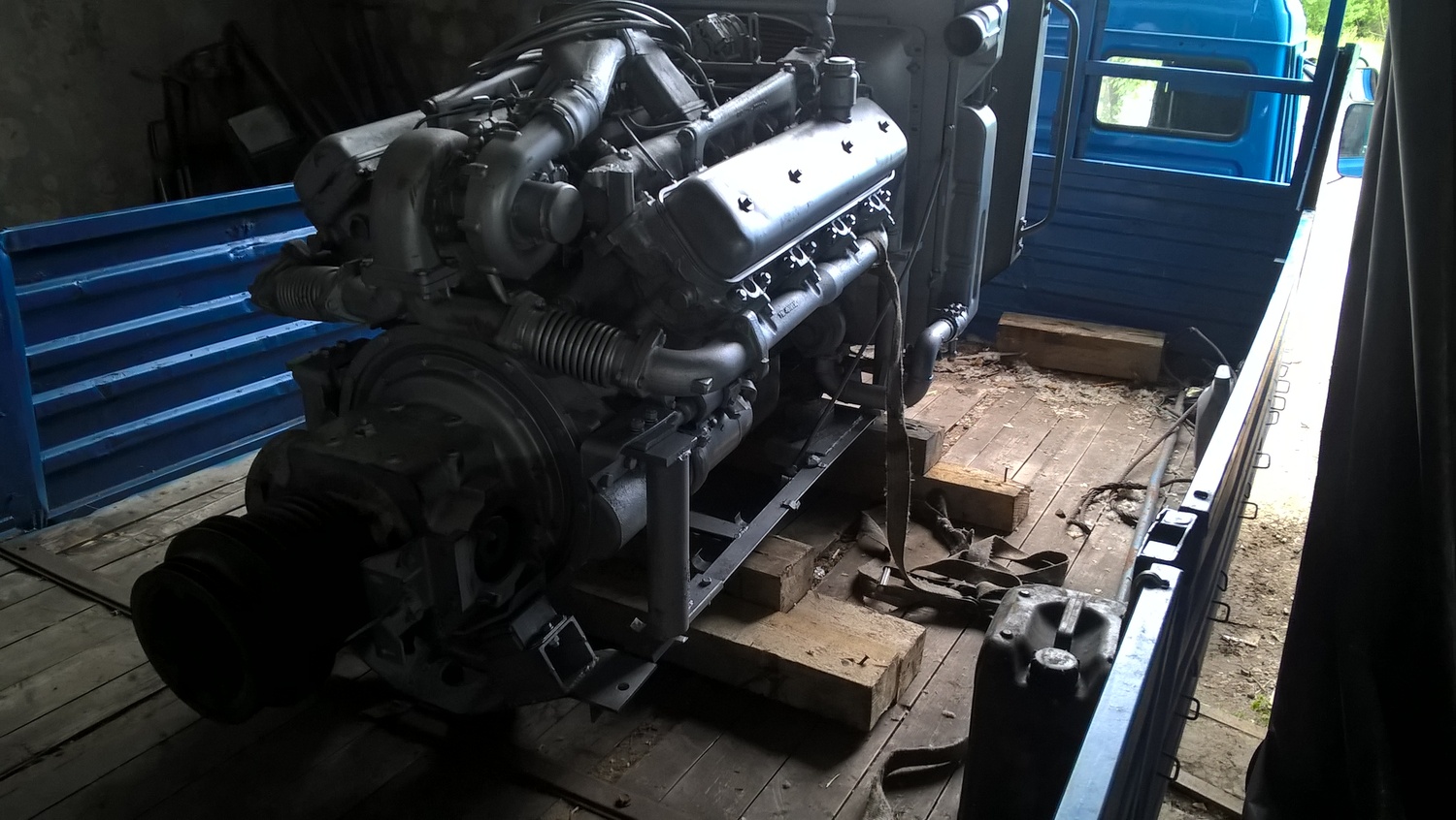 В процессе изготовления монтажного комплекта нам необходим двигатель ЯМЗ на нашей производственной базе для его доработки и частичной обвески монтажным комплектом. Детали монтажного комплекта, которые мешают погрузки-разгрузки двигателя и его перевозки укладываются в отдельный транспортировочный ящик.