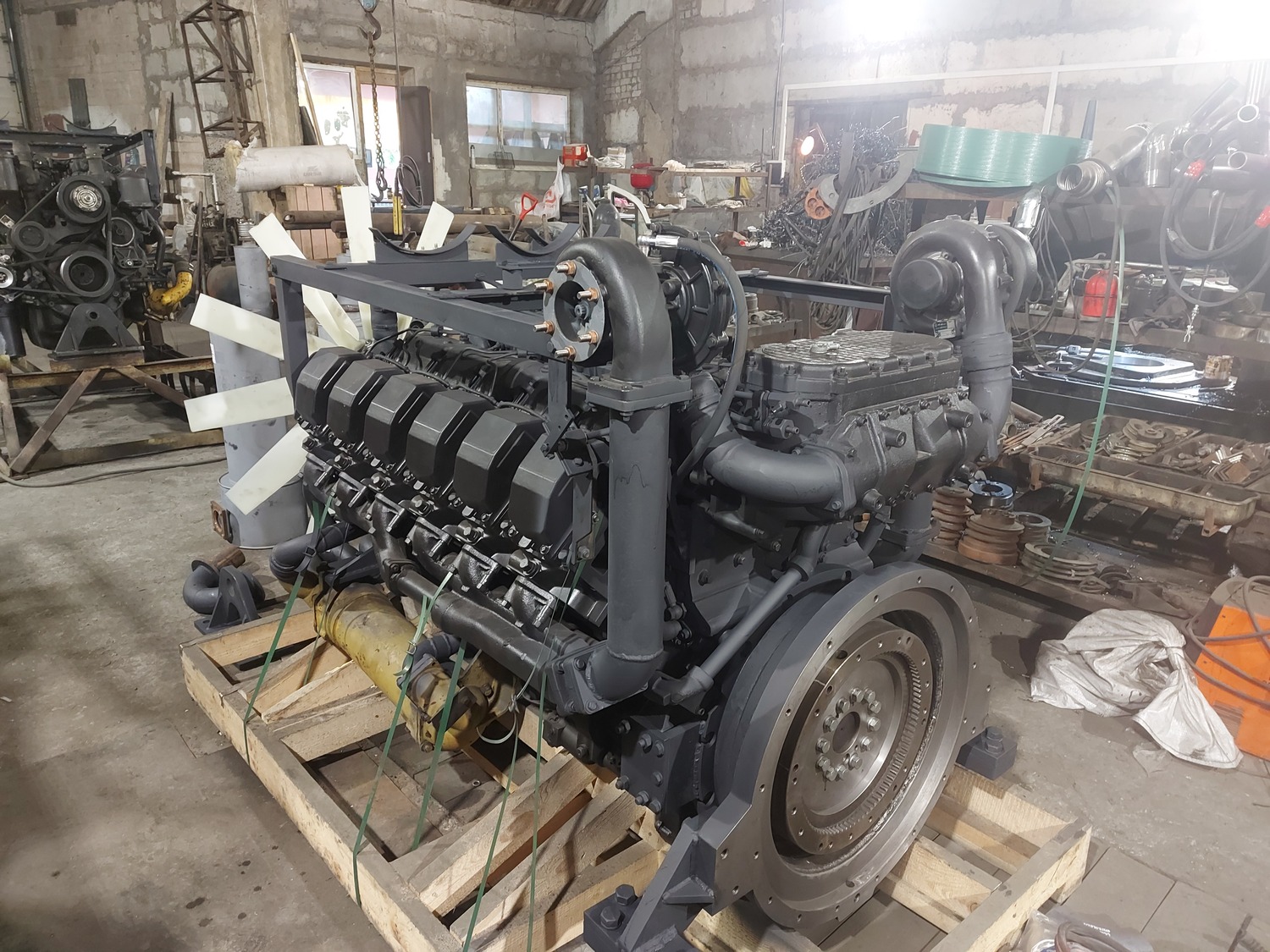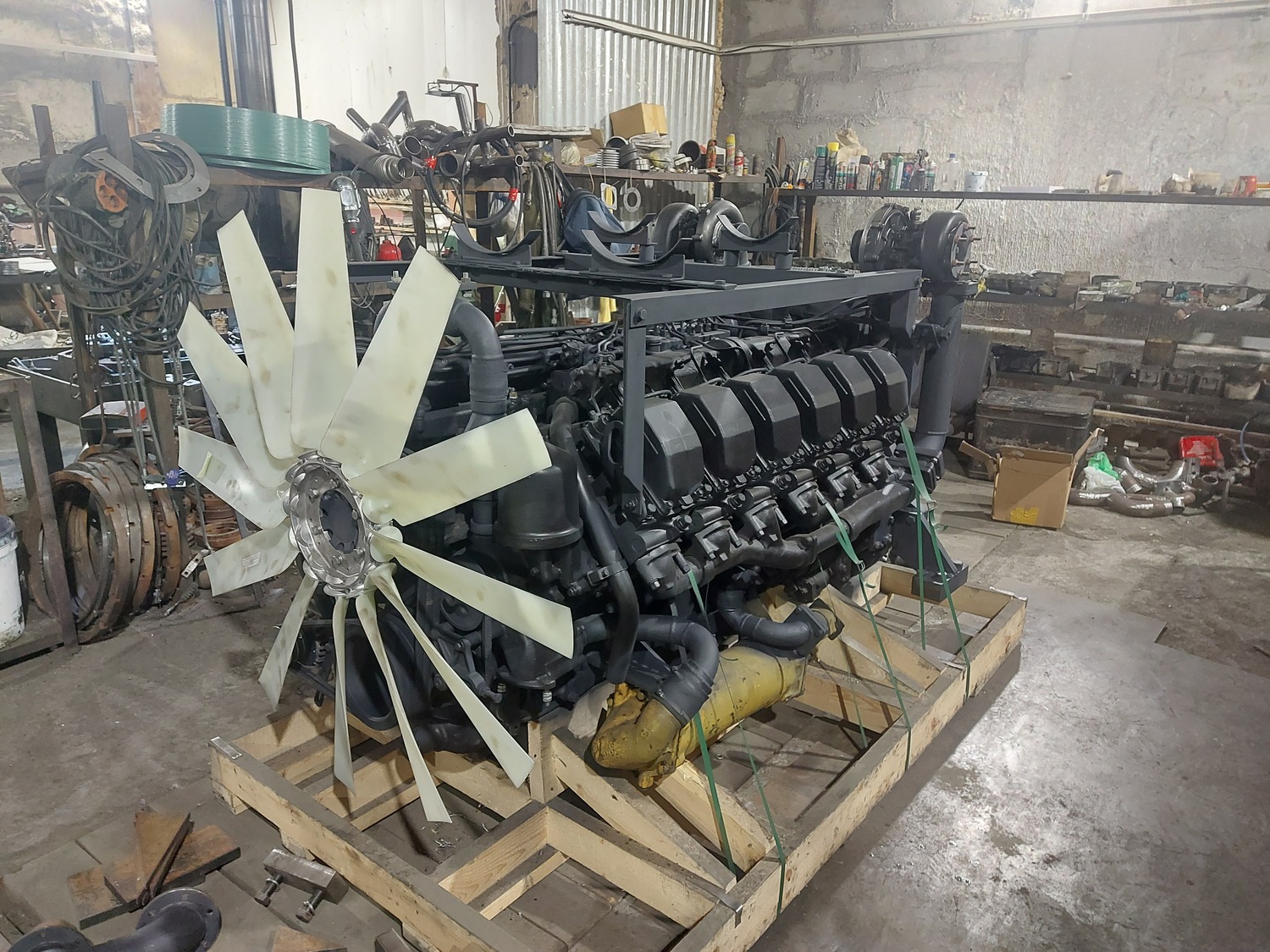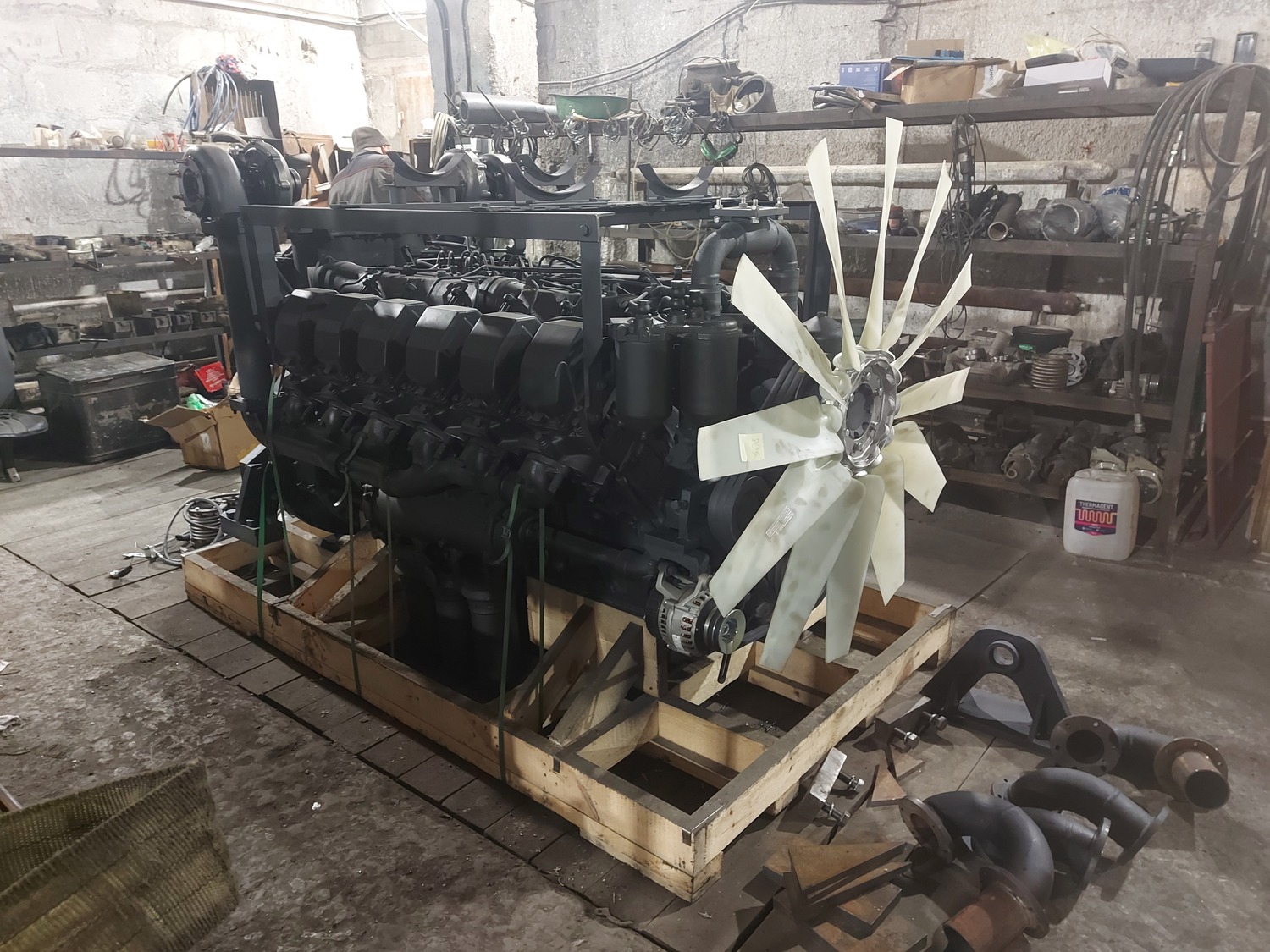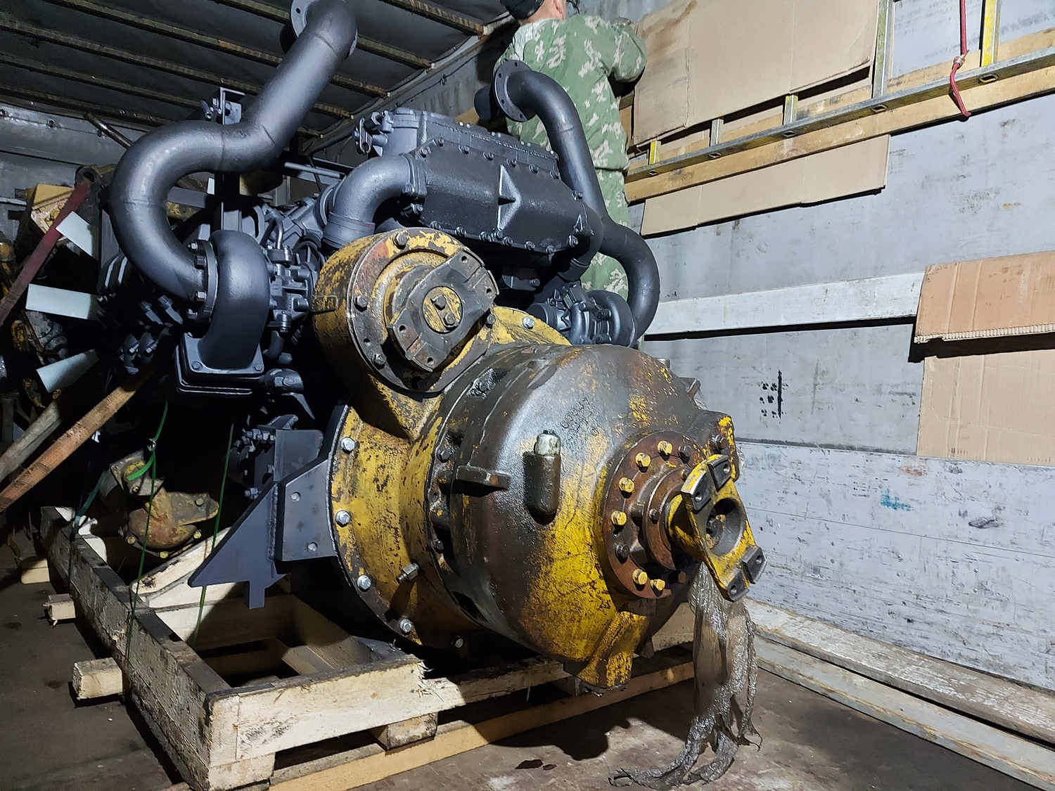 В процессе изготовления монтажного комплекта нам необходим двигатель ЯМЗ на нашей производственной базе для его доработки и частичной обвески монтажным комплектом. Детали монтажного комплекта, которые мешают погрузки-разгрузки двигателя и его перевозки укладываются в отдельный транспортировочный ящик.