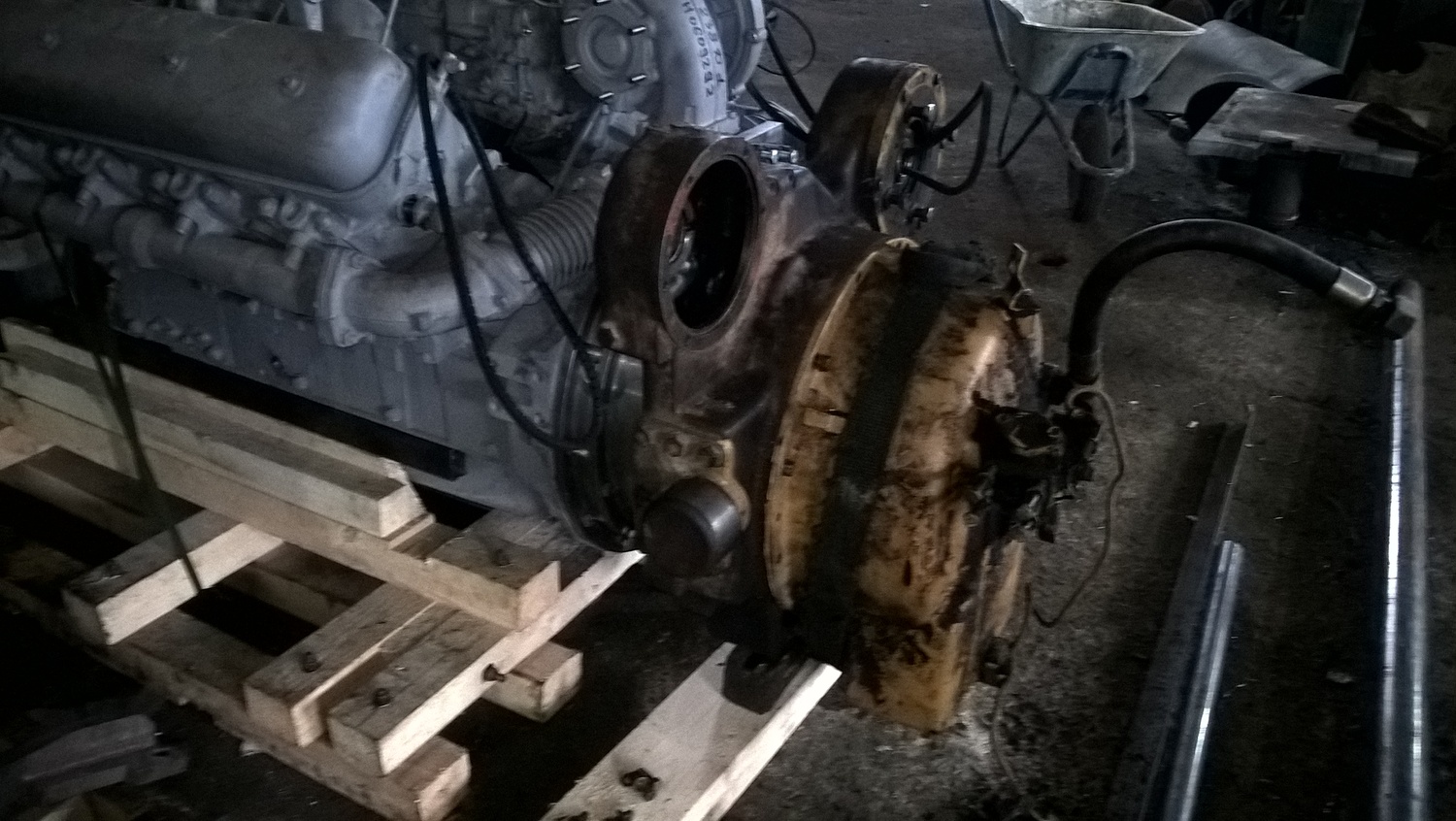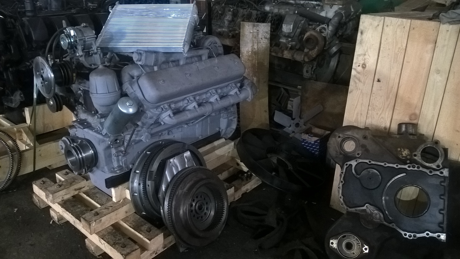В процессе изготовления монтажного комплекта нам необходим двигатель ЯМЗ на нашей производственной базе для его доработки и частичной обвески монтажным комплектом. Детали монтажного комплекта, которые мешают погрузки-разгрузки двигателя и его перевозки укладываются в отдельный транспортировочный ящик.
