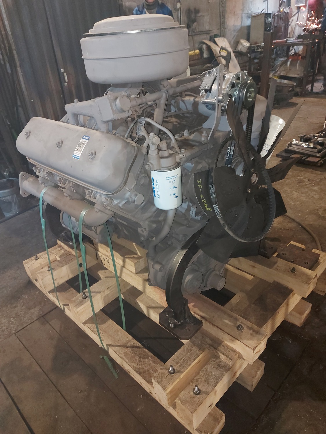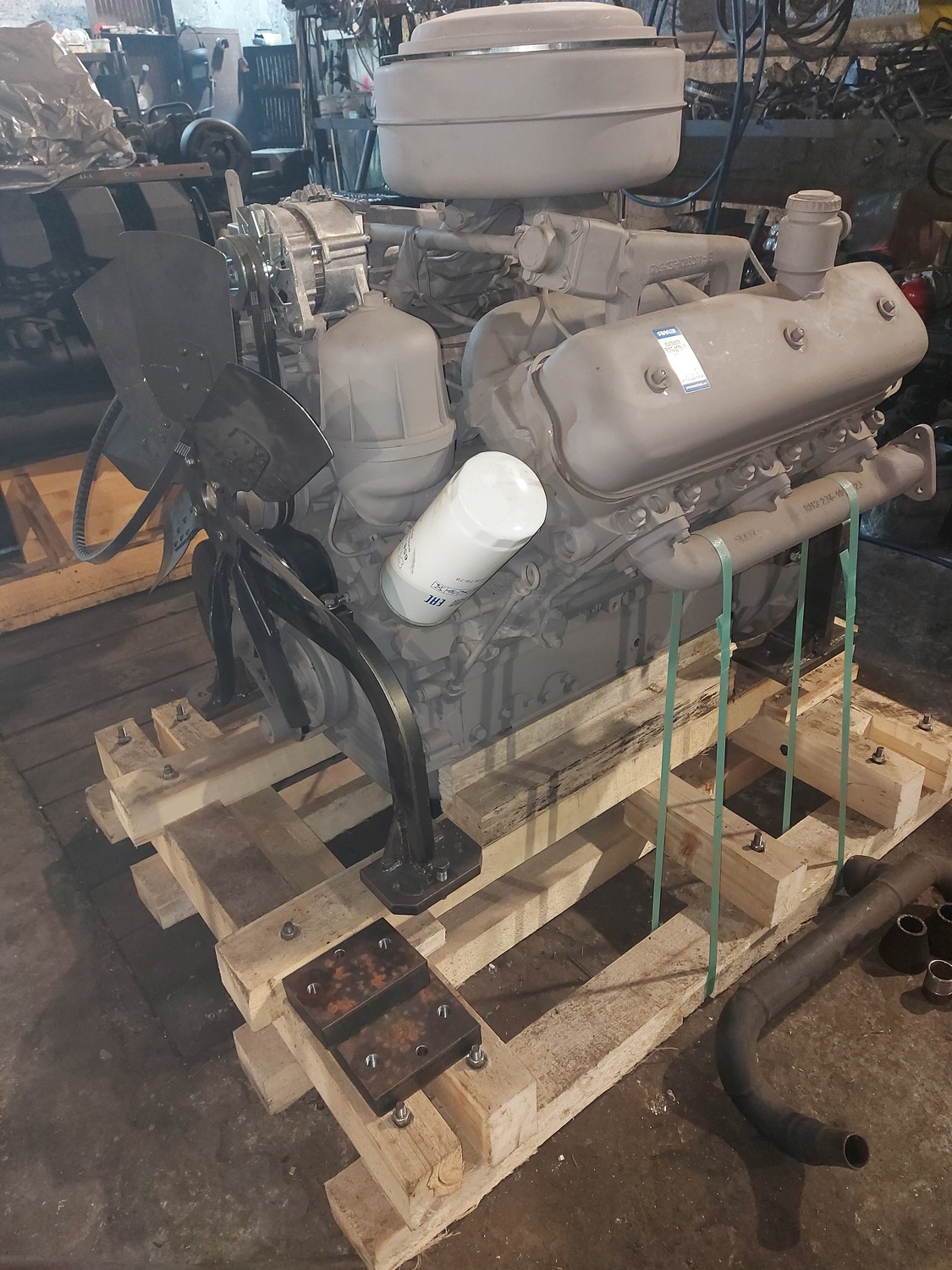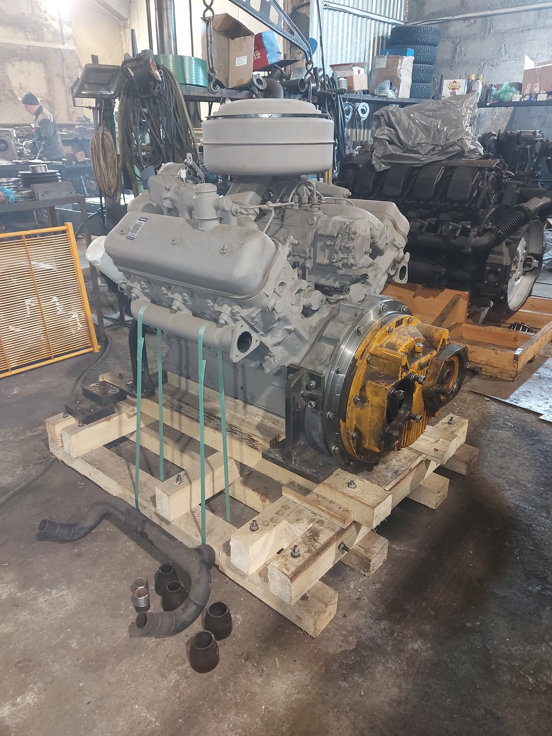 В процессе изготовления монтажного комплекта нам необходим двигатель ЯМЗ на нашей производственной базе для его доработки и частичной обвески монтажным комплектом. Детали монтажного комплекта, которые мешают погрузки-разгрузки двигателя и его перевозки укладываются в отдельный транспортировочный ящик.
