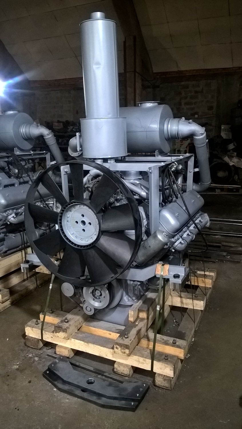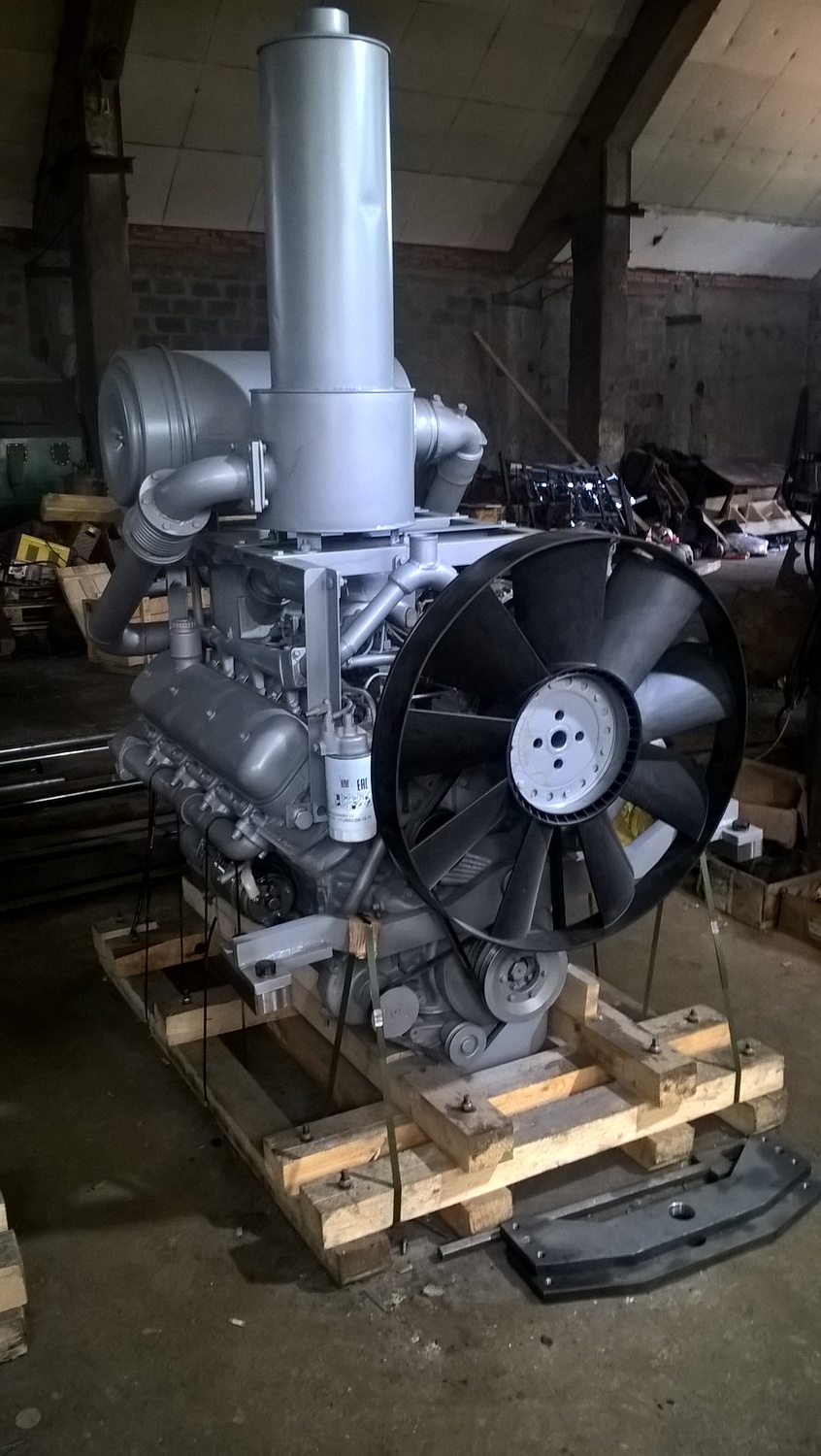 В процессе изготовления монтажного комплекта нам необходим двигатель ТМЗ или ЯМЗ на нашей производственной базе для его доработки и частичной обвески монтажным комплектом. Детали монтажного комплекта, которые мешают погрузки-разгрузки двигателя и его перевозки укладываются в отдельный транспортировочный ящик.